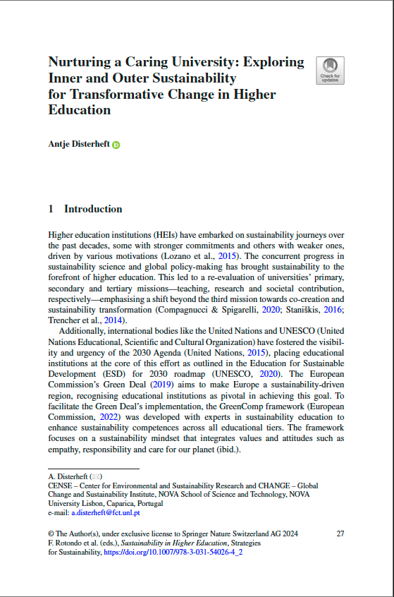 Disterheft, A. (2024). Nurturing a Caring University: Exploring Inner and Outer Sustainability for Transformative Change in Higher Education. In F. Rotondo, L. Giovanelli, & R. Lozano (Eds.), Sustainability in Higher Education: Strategies, Performance and Future Challenges (pp. 27–51). Springer Nature Switzerland. https://doi.org/10.1007/978-3-031-54026-4_2