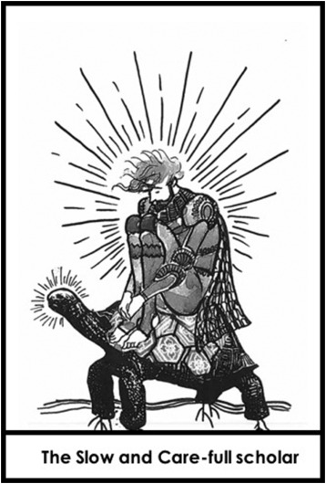 Inspired by their cards, we wish to explore further the characteristics of the slow and care-full scholar (and educator, and student, and any other role we might be currently in).